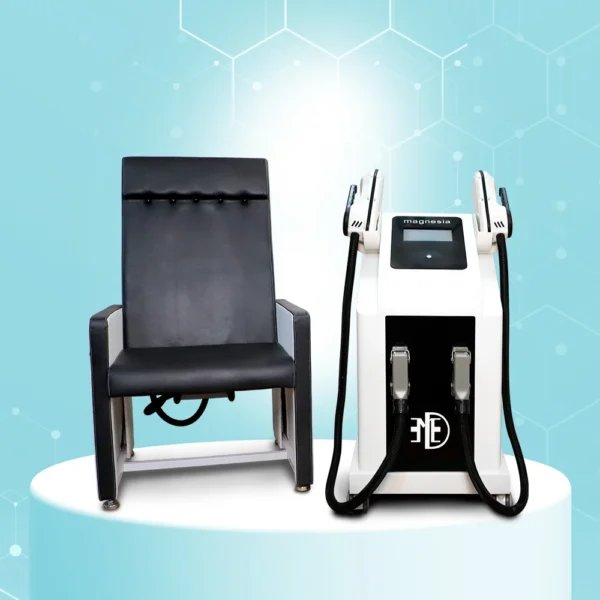 Using electric current and a specialized magnetic coil, Magnesia creates a precisely controlled magnetic field. This field is delivered as pulsed waves through the device’s handpieces to the target tissue. The intensity, frequency, and penetration depth of the pulses are adjustable based on the patient’s condition and treatment goals. All sessions are prescribed by a physician and tailored to individual needs.